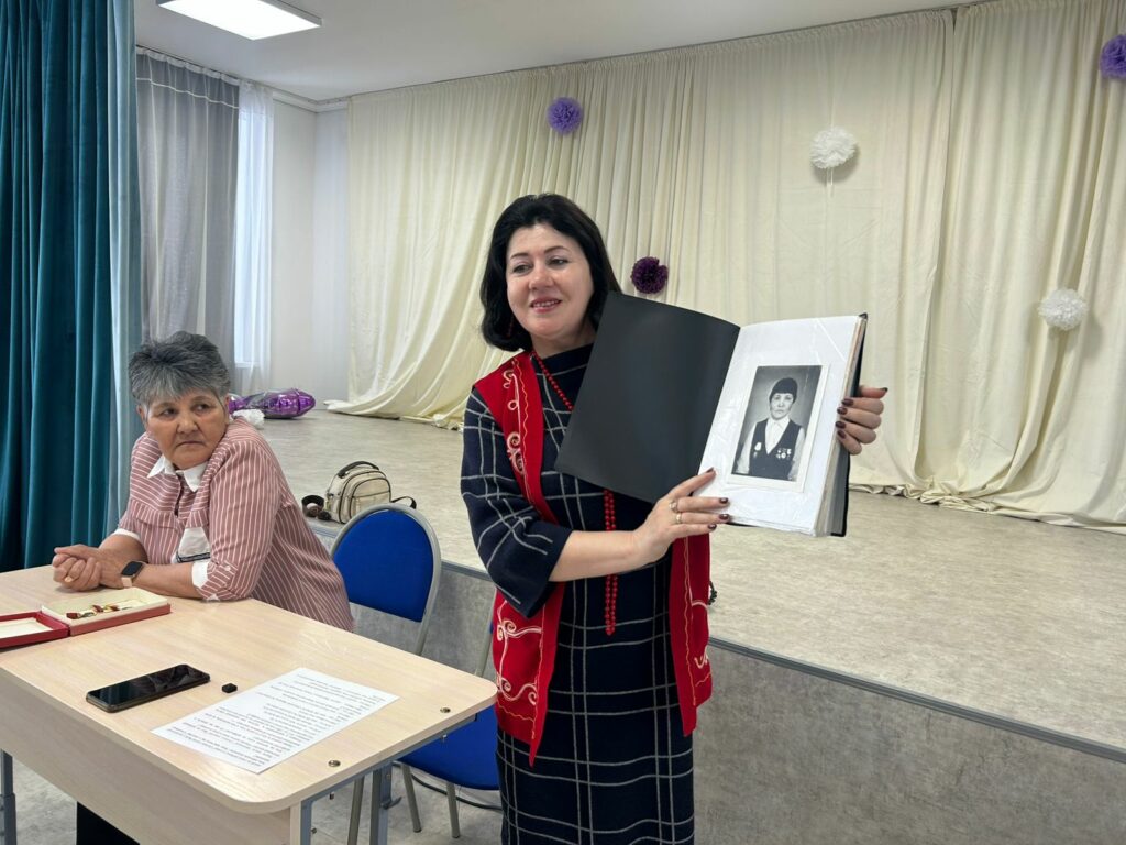 Оқушылар қонақтың еңбек жолымен танысты. Айбаршын Жұмашевна әке жолын жалғастырып, 19 жасынан бастап механизатор болып еңбек еткен. Еңбекқорлығы мен кәсібіне деген адалдығының арқасында ол ауыл шаруашылығы саласында айтарлықтай жетістіктерге жетіп, бірнеше мәрте мемлекеттік наградаларға ұсынылған. Оның алғашқы марапаты – К-70 маркалы атаулы трактор болды.